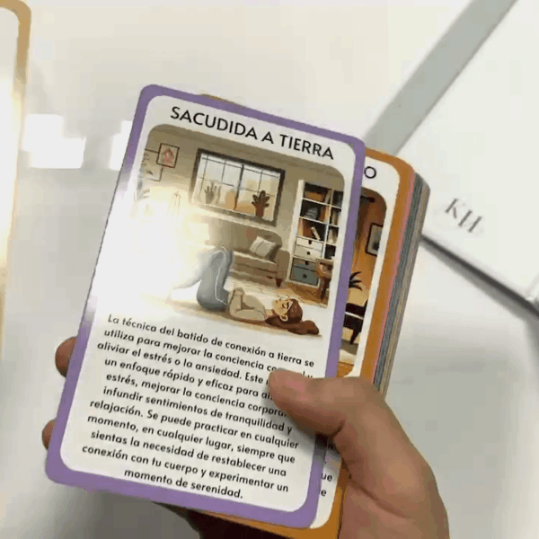 Desde técnicas de respiración hasta suaves prácticas de conexión a tierra, cada tarjeta ofrece un enfoque práctico para sentirte más presente y conectado con tu cuerpo.